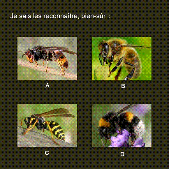 -A : FRELON -B : ABEILLE – C : GUEPE -D: BOURDON